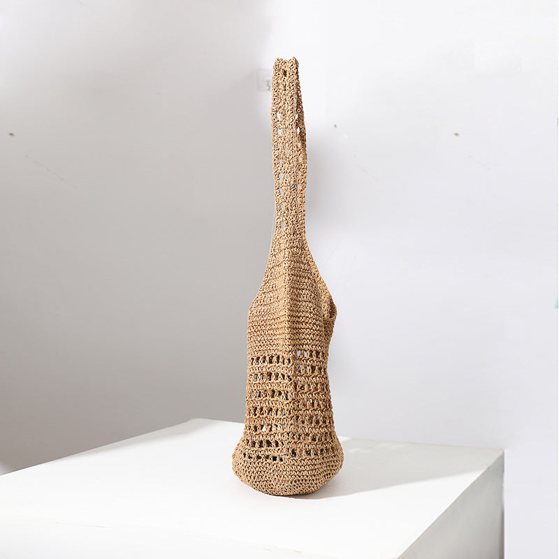 Capacity Straw Korean Style Hollowed Leisure Woven Portable Seaside Shoulder Bags