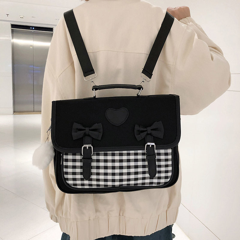 Fresh Lolita Style Chessboard Plaid Bow Backpacks