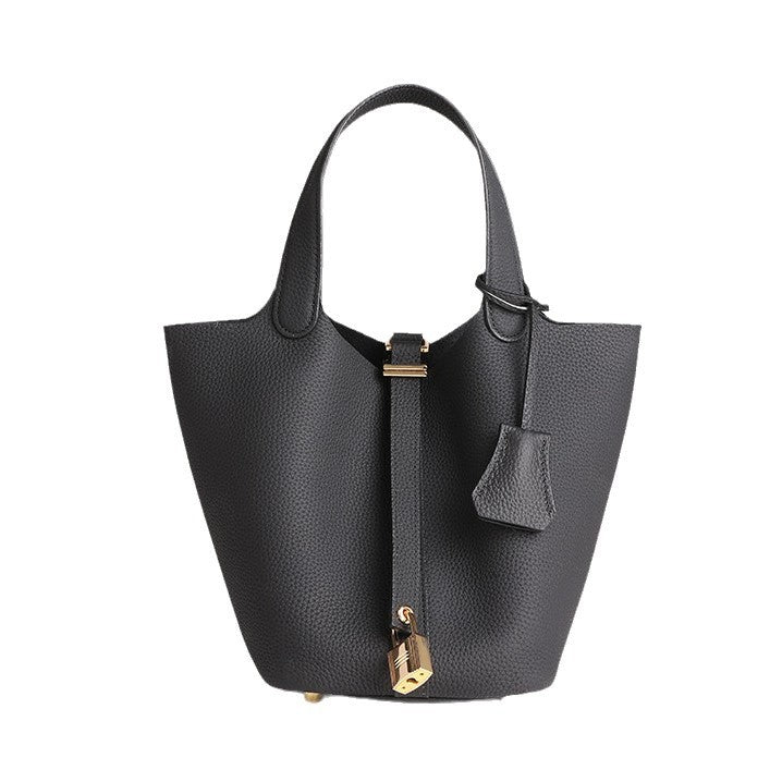 Layer Cowhide Lychee Pattern Solid Color Bucket Bags