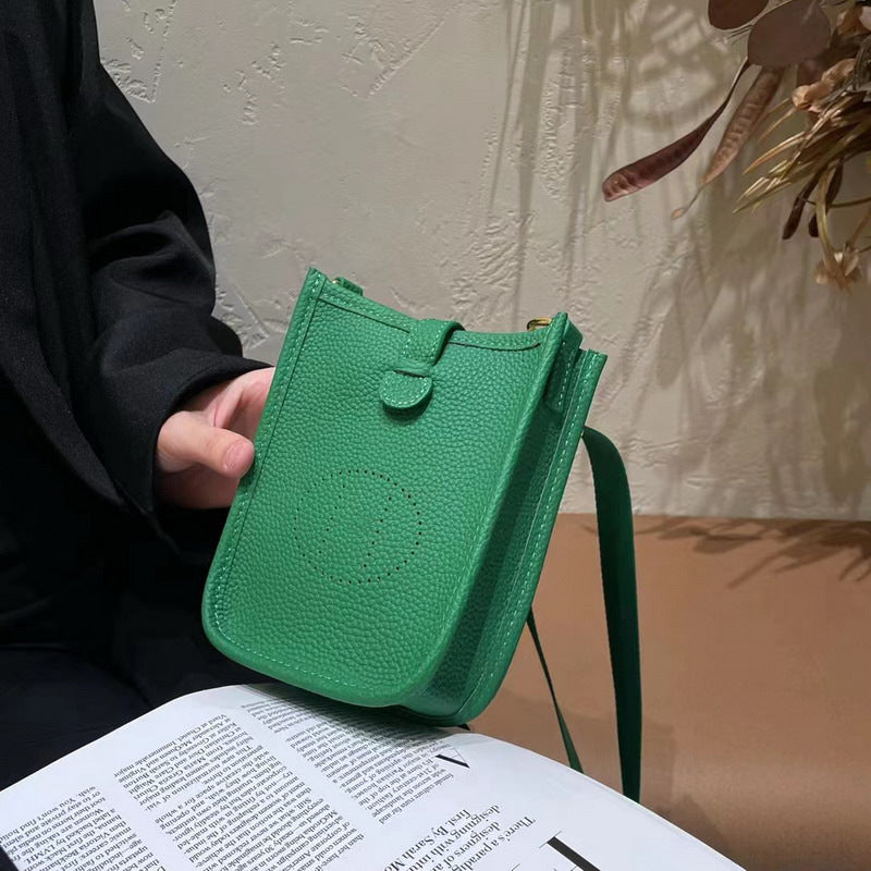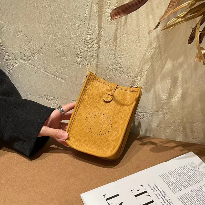 Layer Cowhide Lychee Pattern Unisex Leather Phone Bags