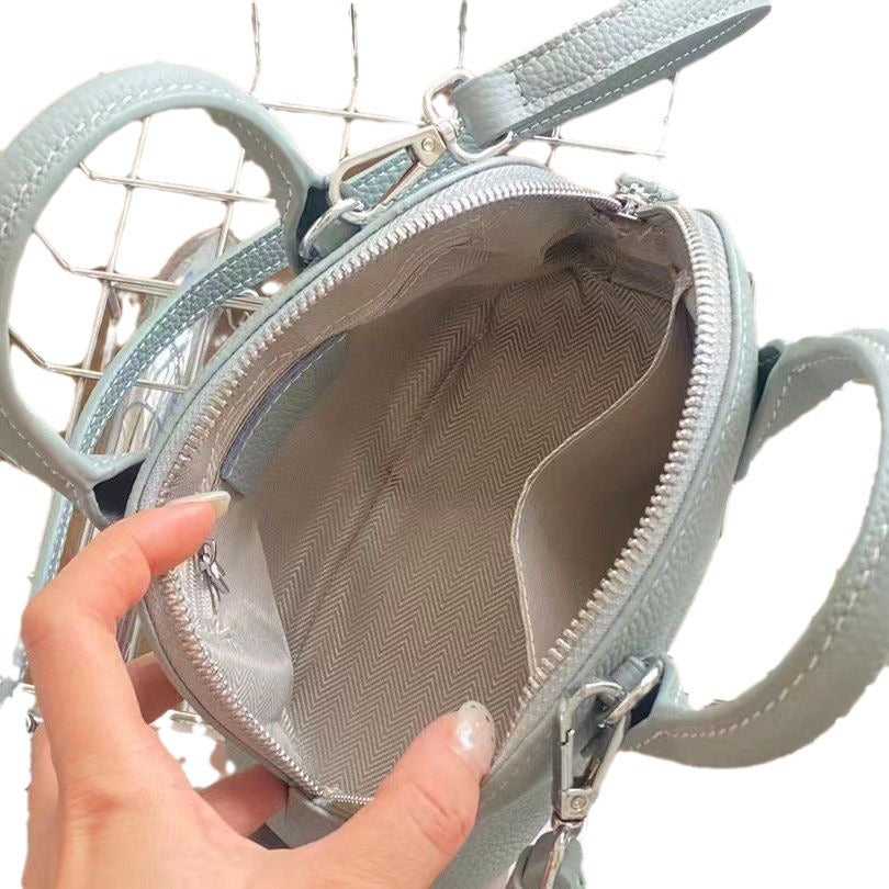 Layer Cowhide Shell Simple Fashion Bowling Mini Handbags