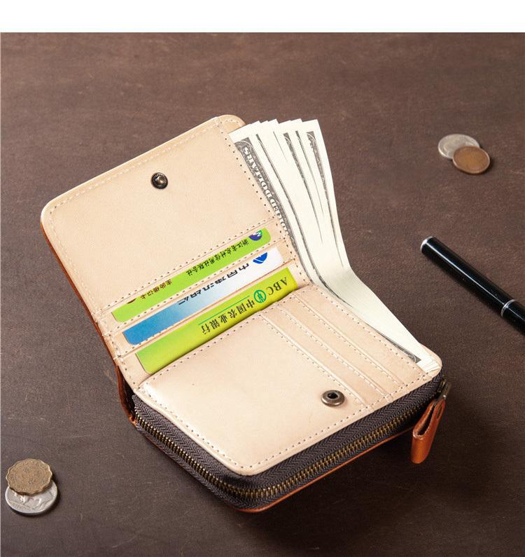 Men's Cowhide Short Genuine Vertical Zipper Green Purses