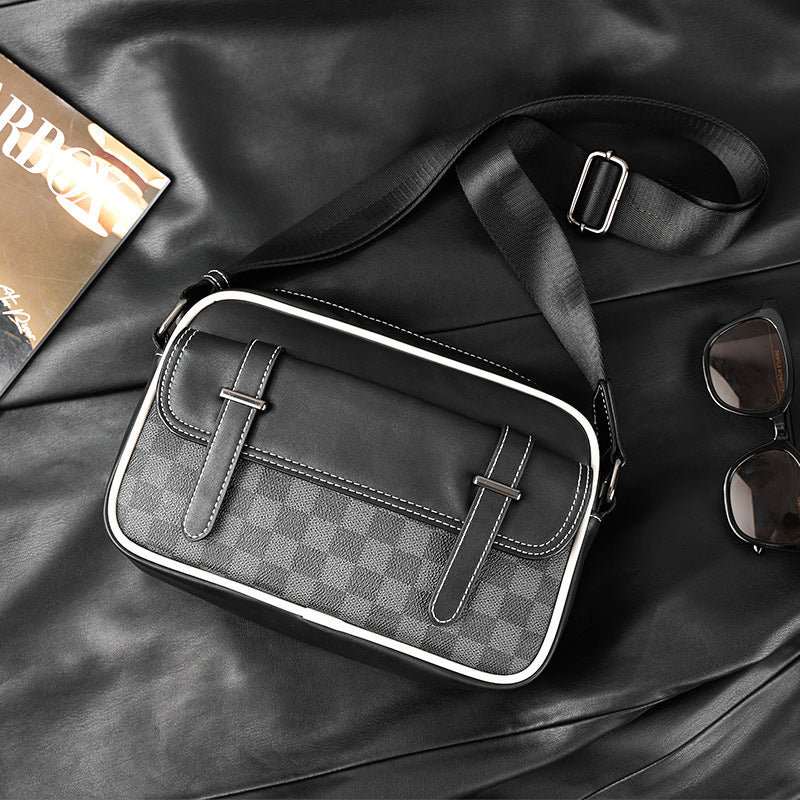 Men's High Quality Plaid Tide Leather Fashionable Men's Shoulder Bags
