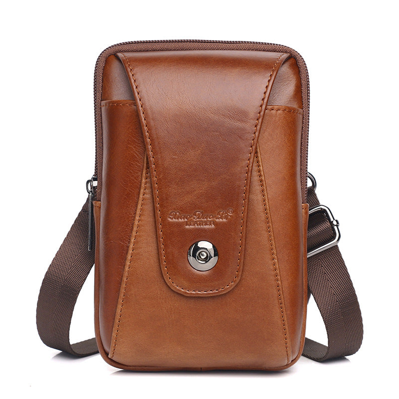 Men's Leather Mini Mobile Retro Cowhide Pannier Men's Waist Packs