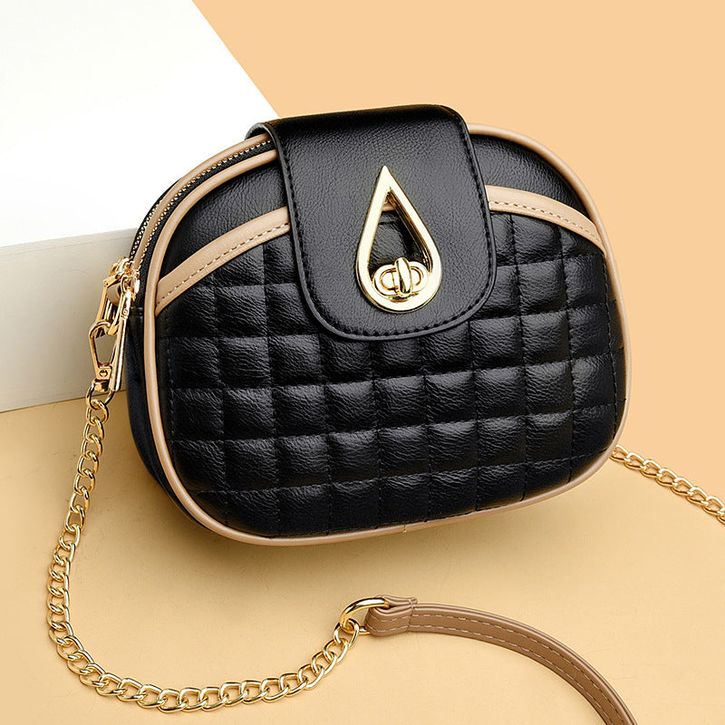 Women's Chain Round Versatile Plaid Textured Shoulder Bags