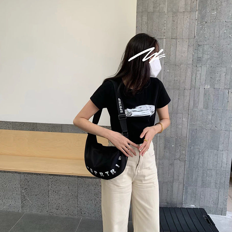 Women's Cloth Simple Letter Wide Straps Large Shoulder Bags
