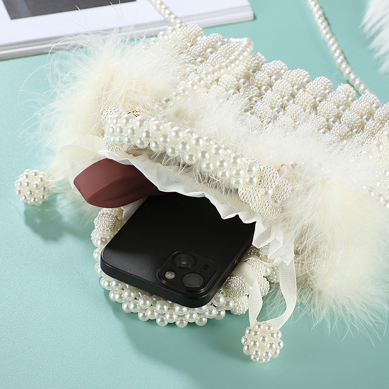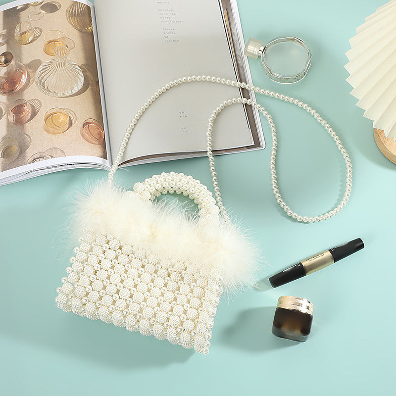 Women's Fan Pearl Dinner Sophisticated Type Banquet Evening Bags