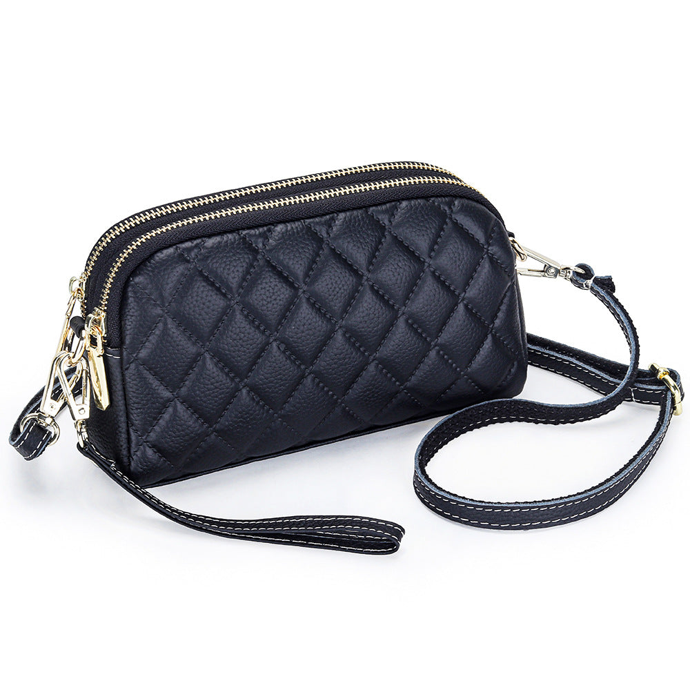 Women's Fashion Embossing Diamond Plaid Clutch Zipper Crossbody Bags