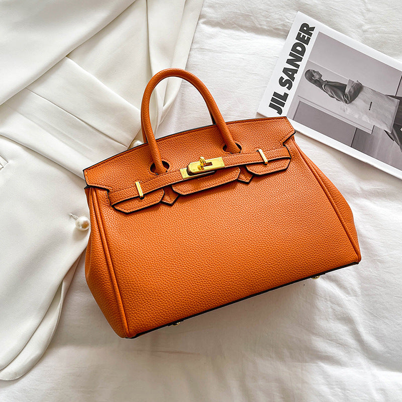 Women's Fashionable Lychee Pattern Portable Texture Large Shoulder Bags