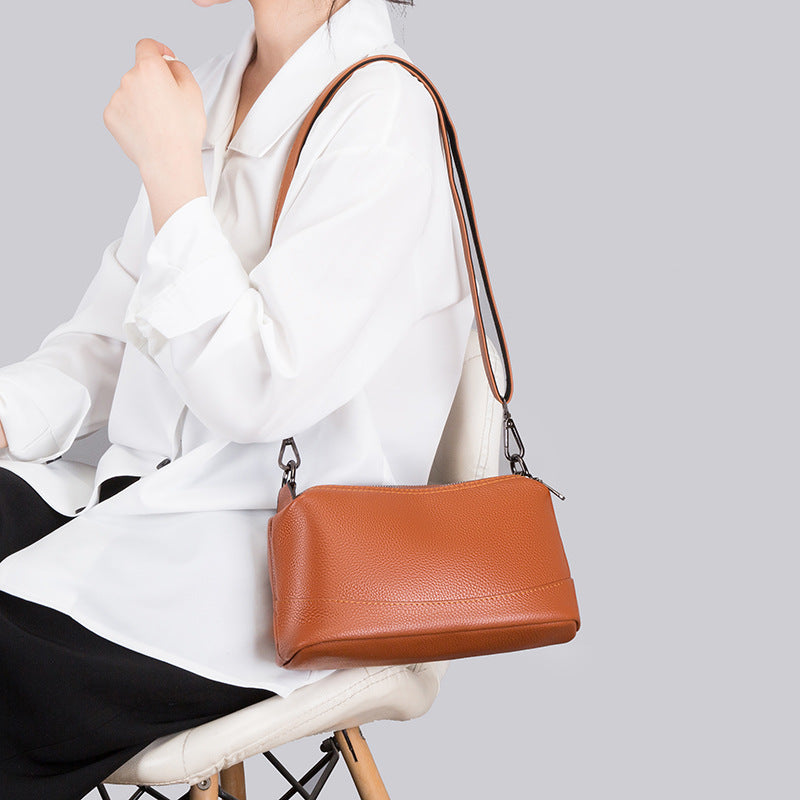 Women's First Layer Cowhide Soft Leather Zipper Light Luxury Shoulder Bags
