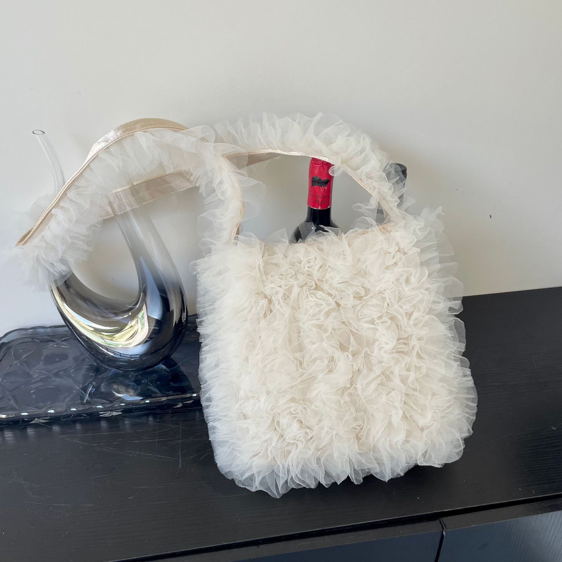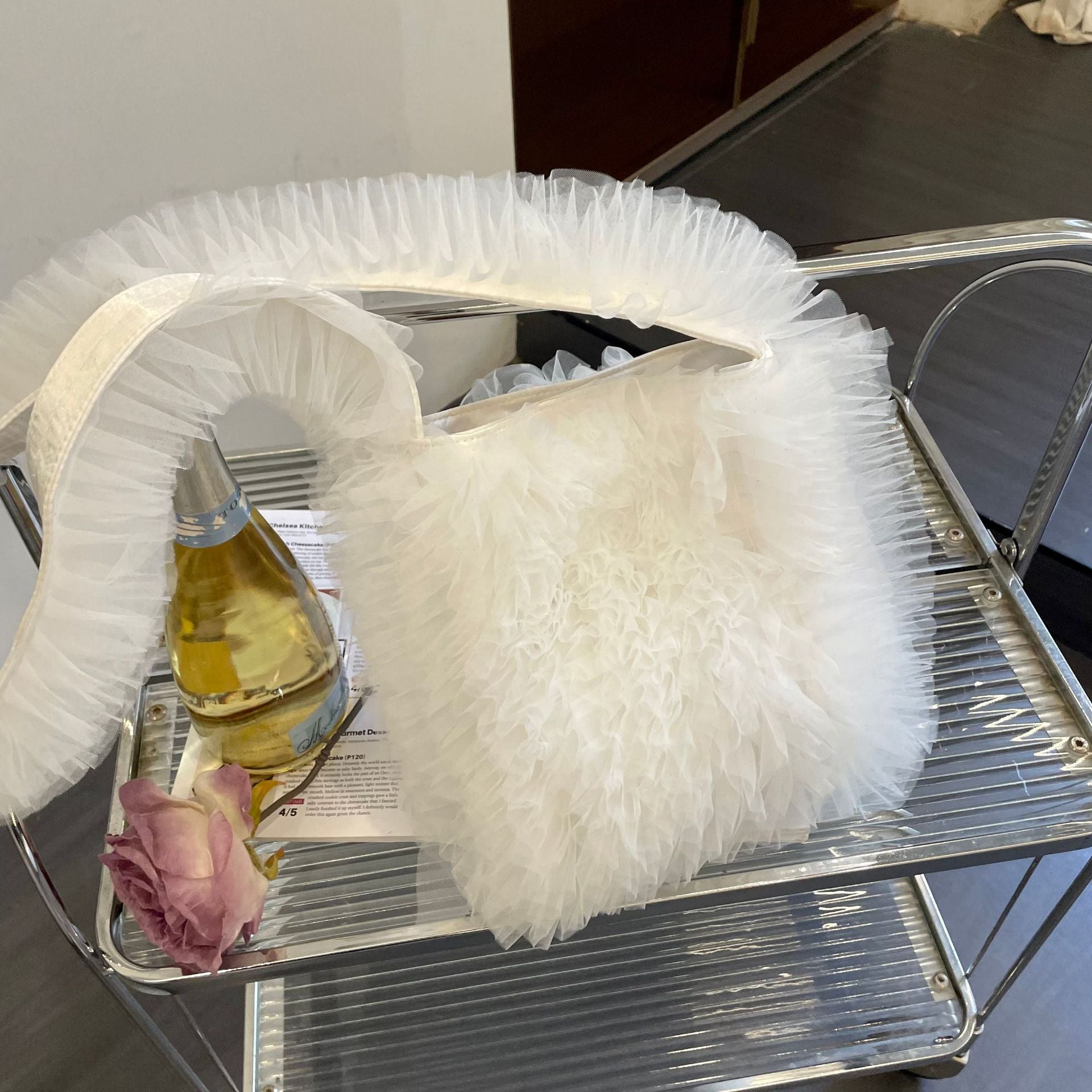 Women's French Style Cake Lace Pleated Layer Yarn Solid Color Crossbody Bags
