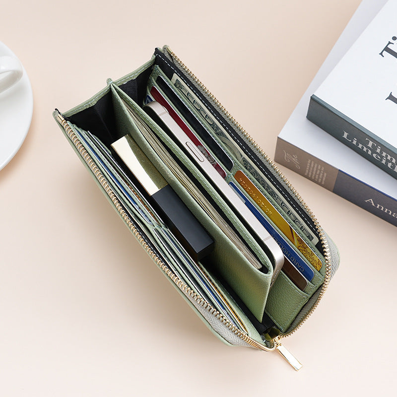 Women's Genuine Leather Long Zipper Fashion Clutch Ladies Wallets