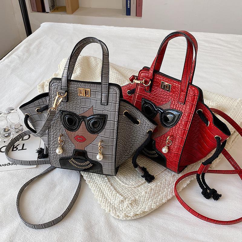 Women's Glasses Retro Stone Pattern Pearl Rivets Handbags