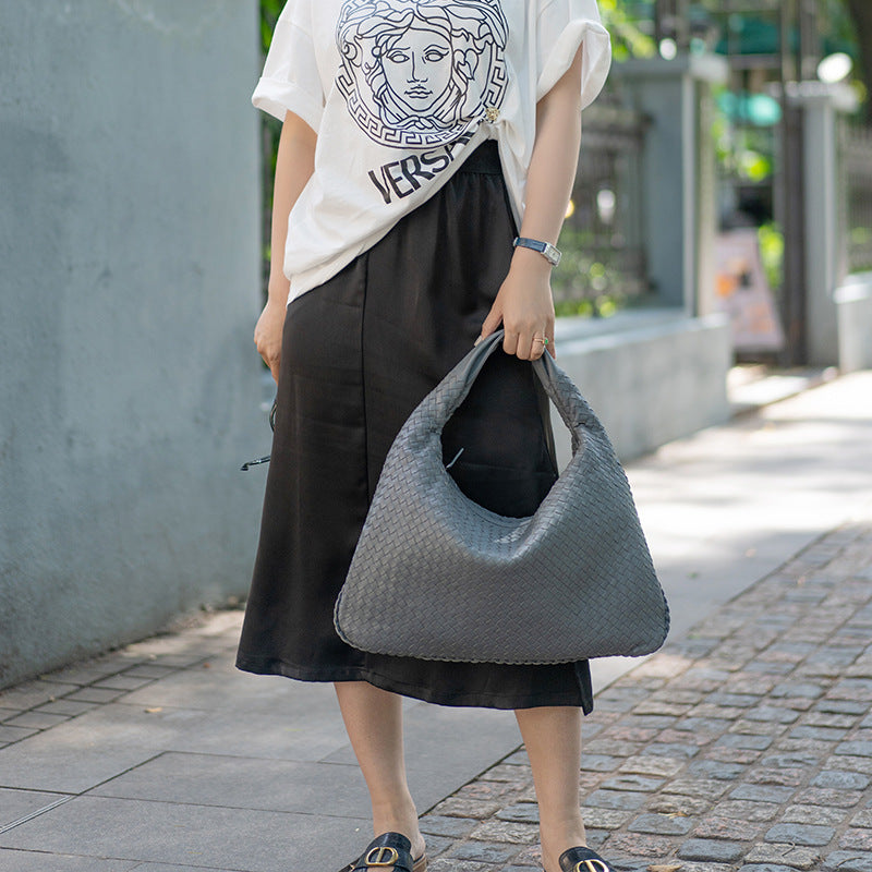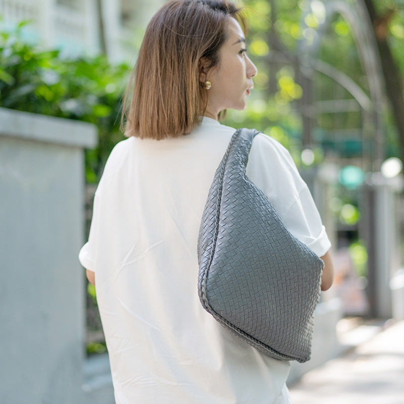 Women's Handmade Sheepskin Woven Fashion Leather Pillow Crossbody Bags