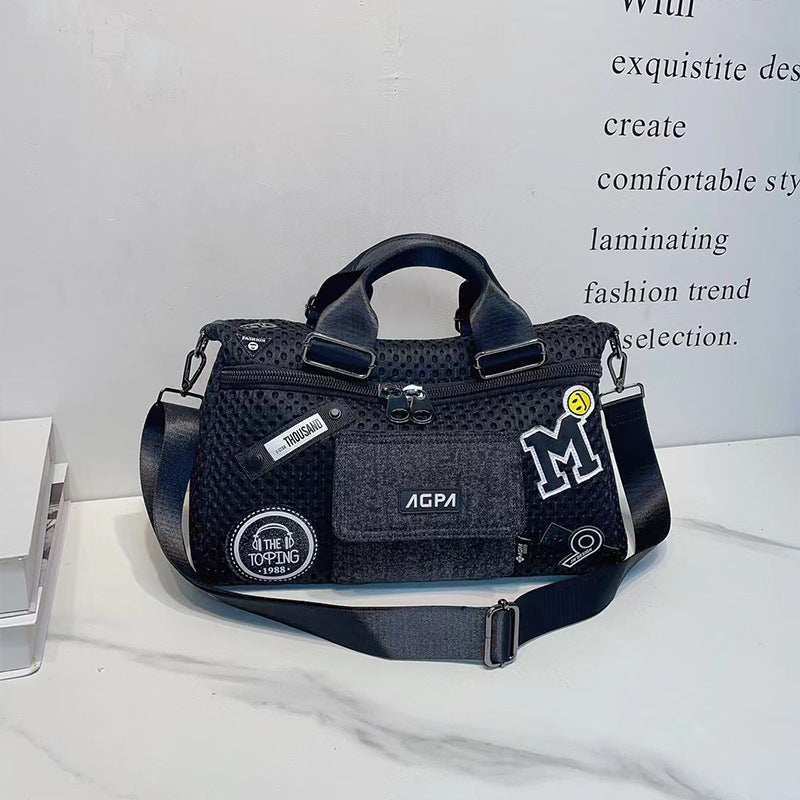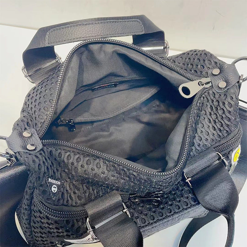 Women's Korean Mesh With Cowhide Fashionable Large Handbags