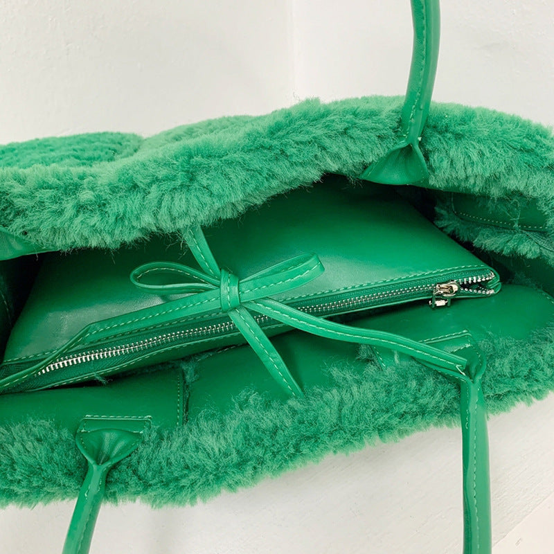 Women's Large Capacity Versatile Lamb Wool Portable Shoulder Bags