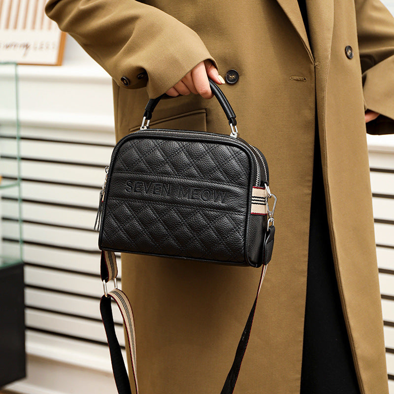 Women's Leather Diamond Embroidery Thread Fashionable Top Shoulder Bags