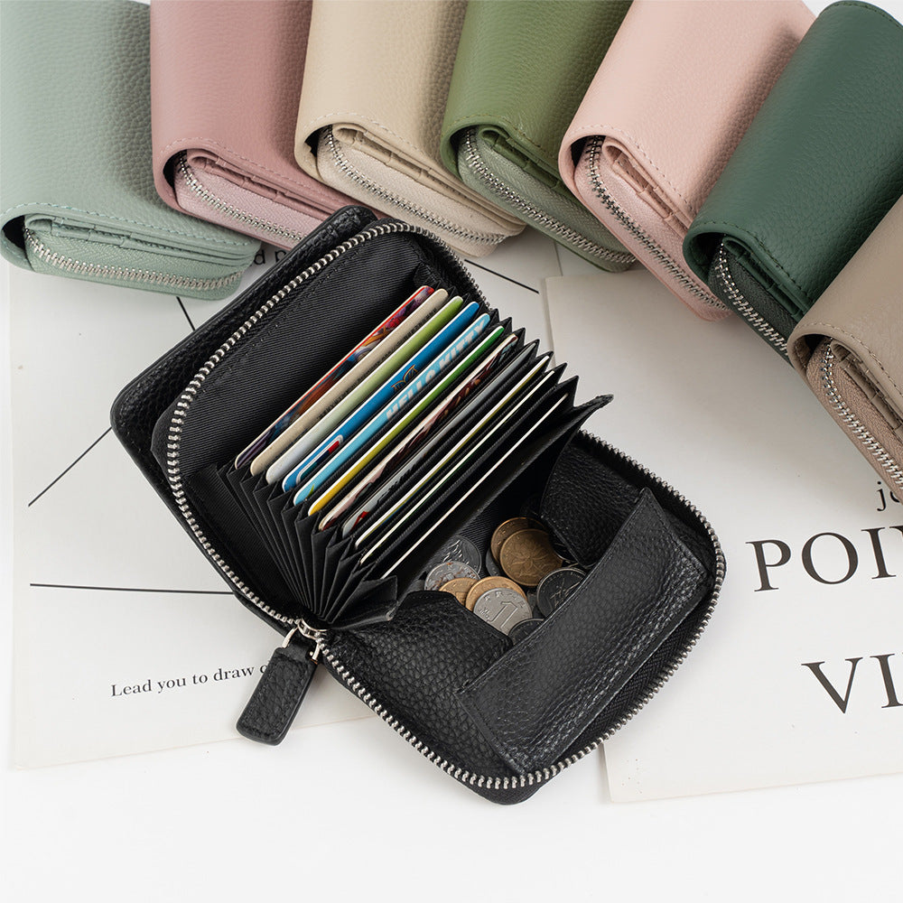 Women's Leather Multiple Slots Expanding Cowhide Large Ladies Wallets