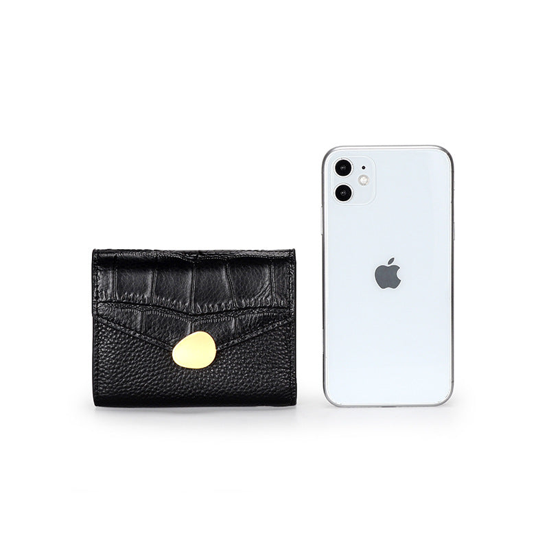 Women's Leather Short Cowhide Crocodile Pattern Three Folding Ladies Wallets