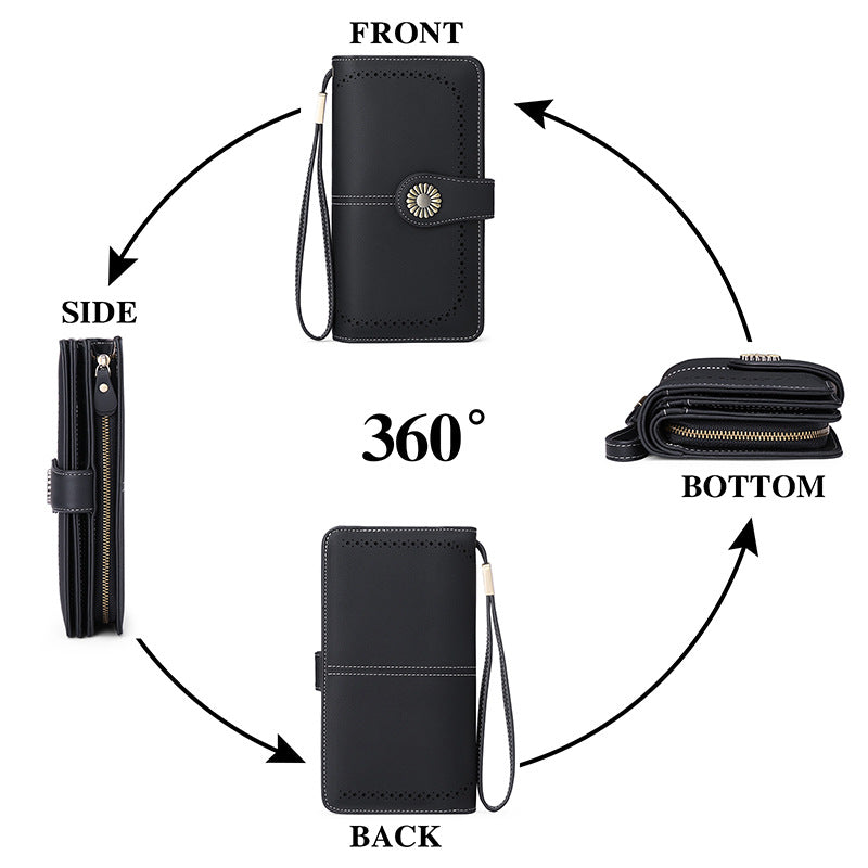 Women's Long Fan Billfold Leather Large Capacity Ladies Wallets