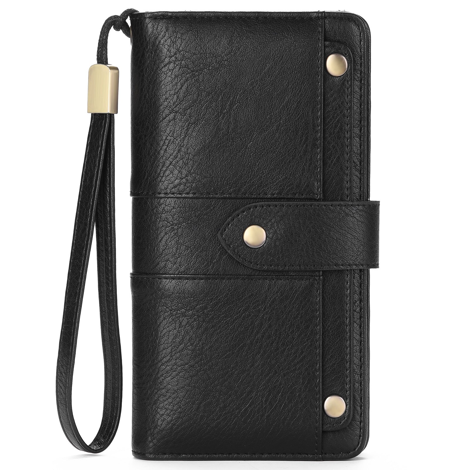 Women's Long Retro Oil Wax Skin Trifold Ladies Wallets