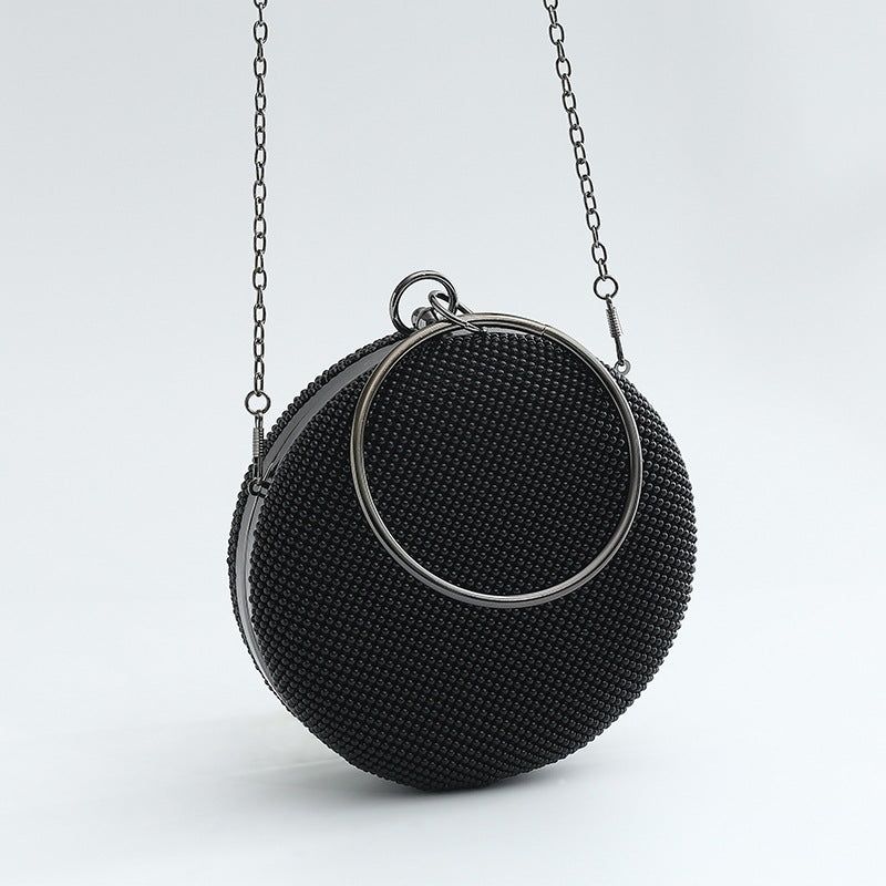 Women's Metal Circle Dinner Party Rhinestone Portable Solid Evening Bags