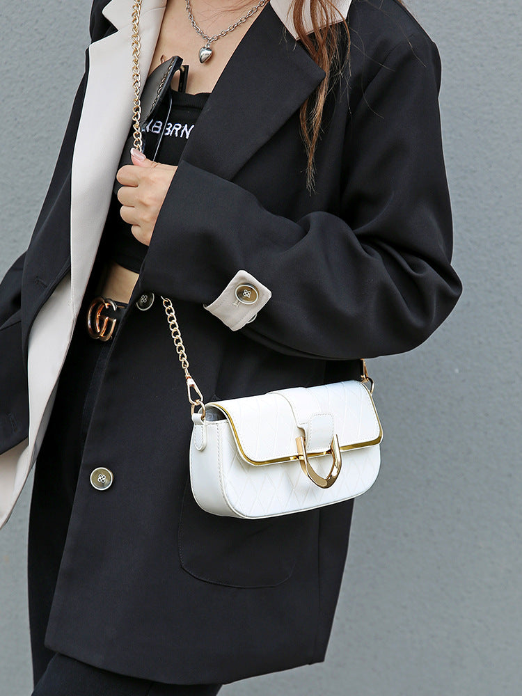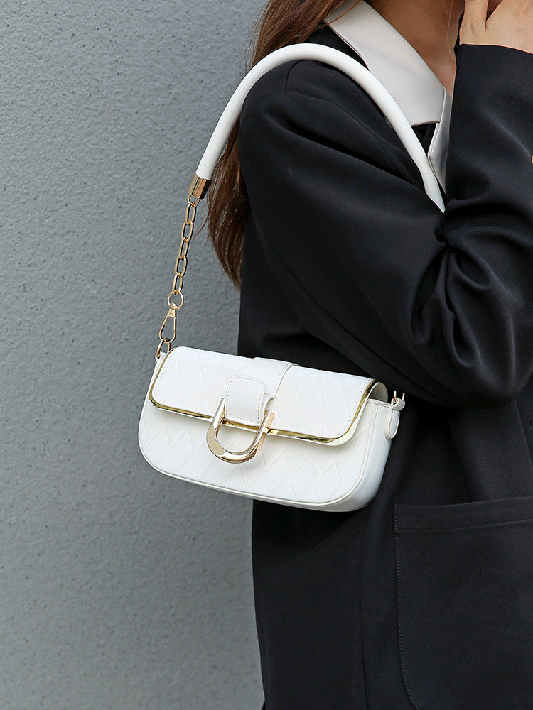 Women's Popular Pink Rhombus Chain Baguette Underarm Simple Crossbody Bags