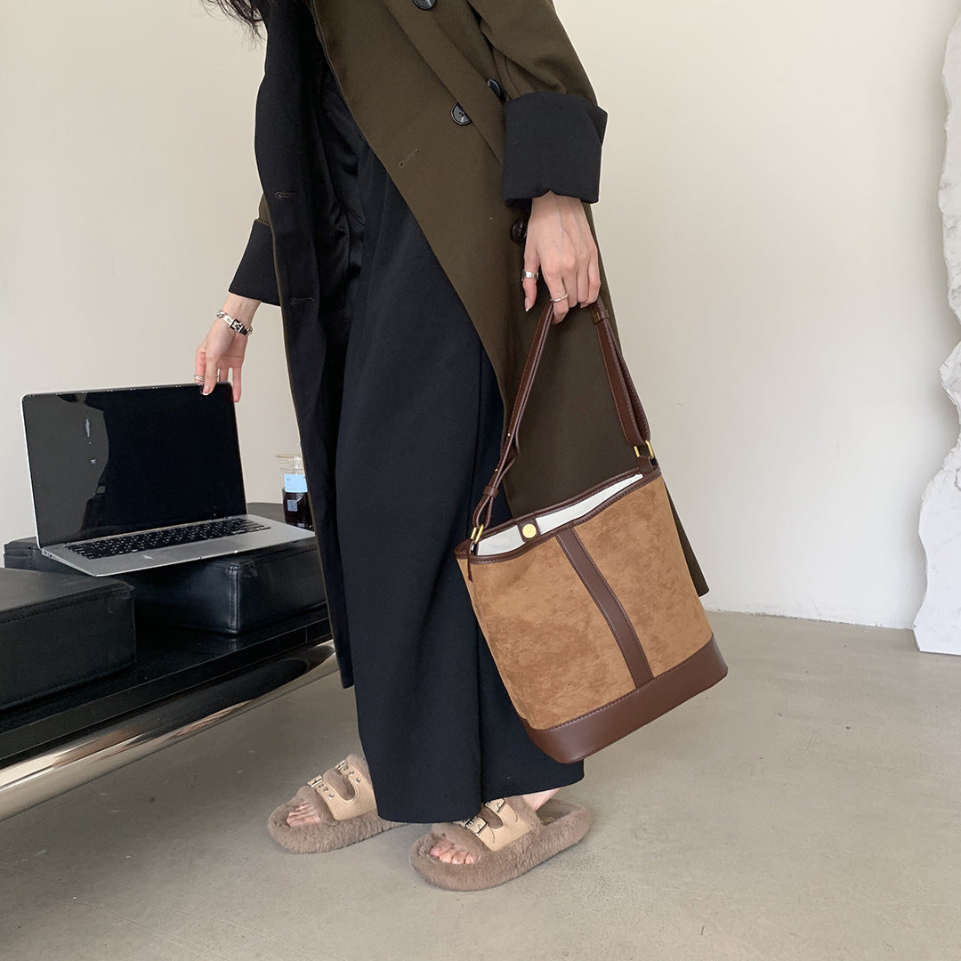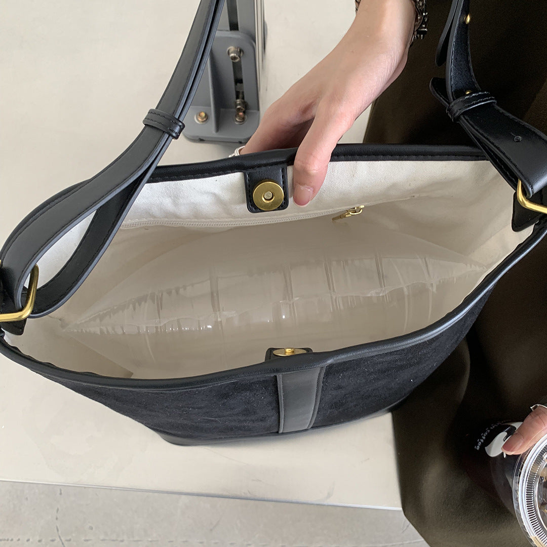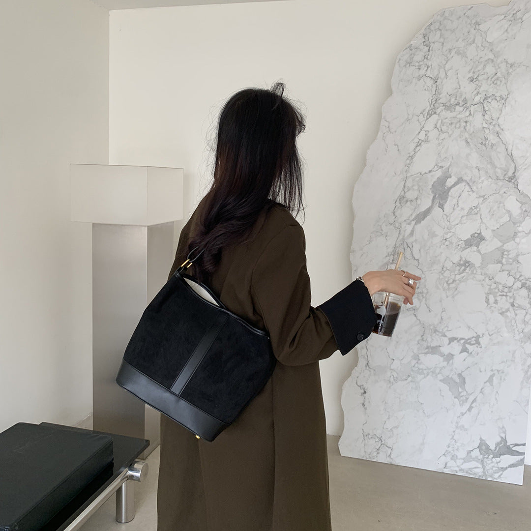 Women's Retro Large Capacity Suede Stitching Underarm Shoulder Bags