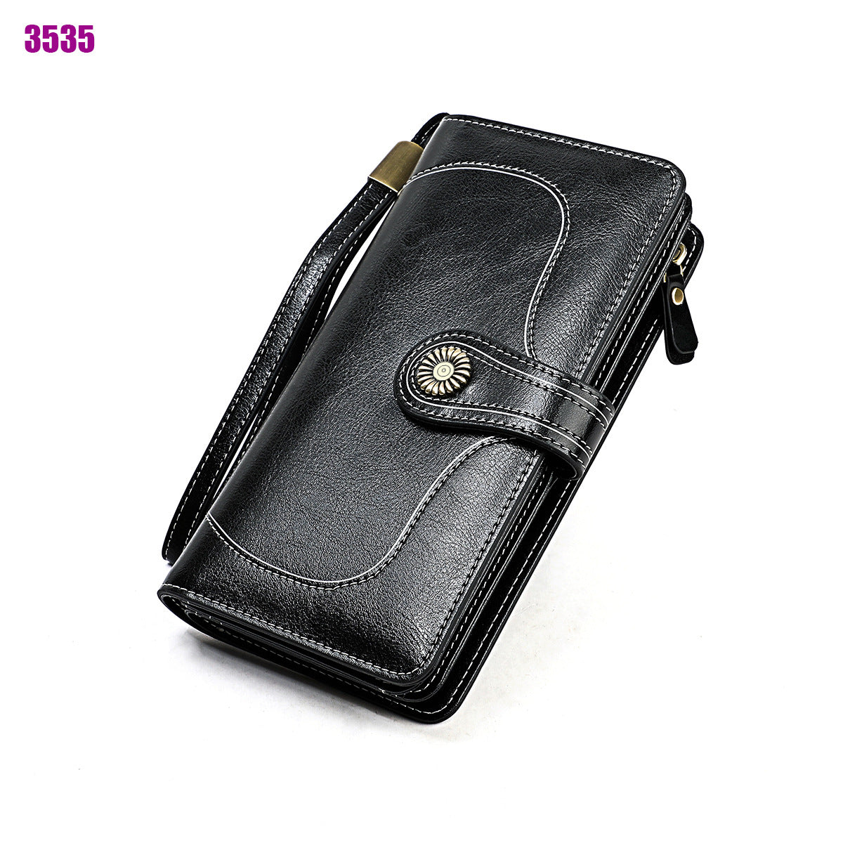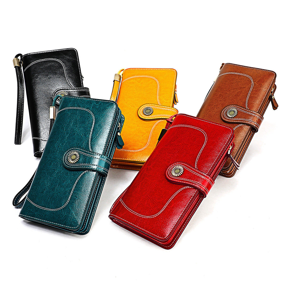 Women's Retro Oil Wax Skin Long Clutch Ladies Wallets