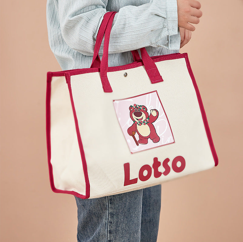 Women's Strawberry Bear Dog Teeth Large Capacity Tote Bags