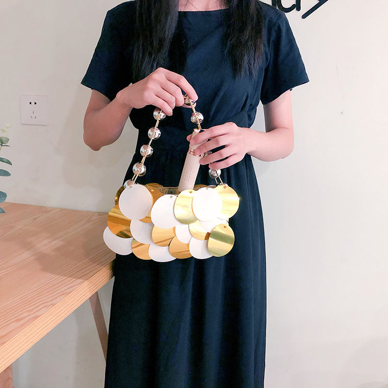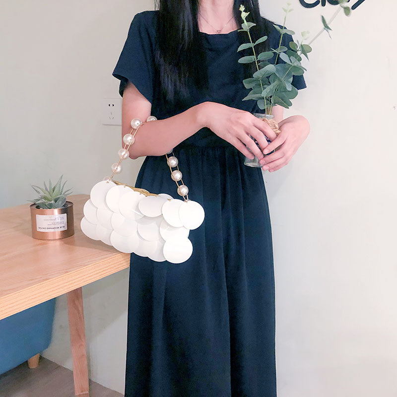 Women's Stringed Pearls Wafer Platinum Sequined Handmade Handbags