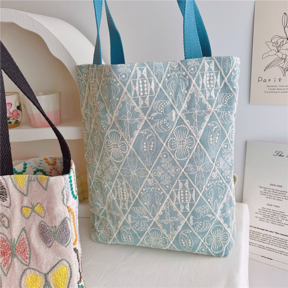 Women's Thick Material Embroidered Cotton Linen Fabric Shoulder Bags