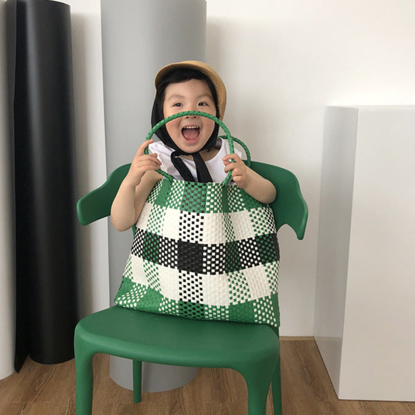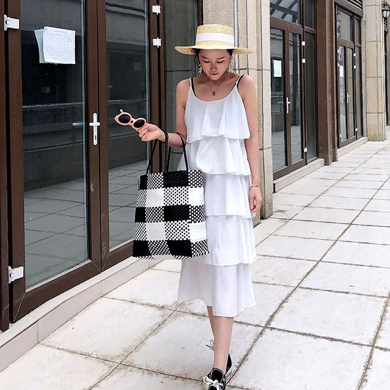 Women's White Plastic Woven Vegetable Basket Pet Shoulder Bags