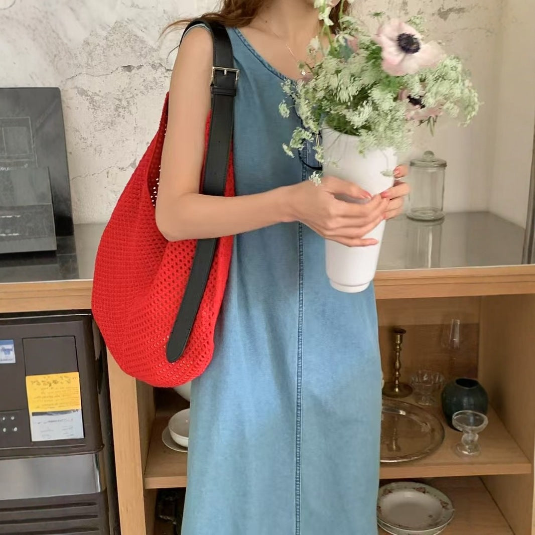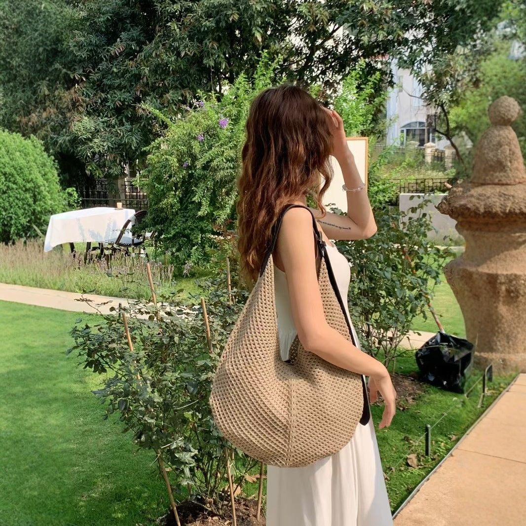 Women's Woven Hollow Seaside Vacation Beach Straw Shoulder Bags